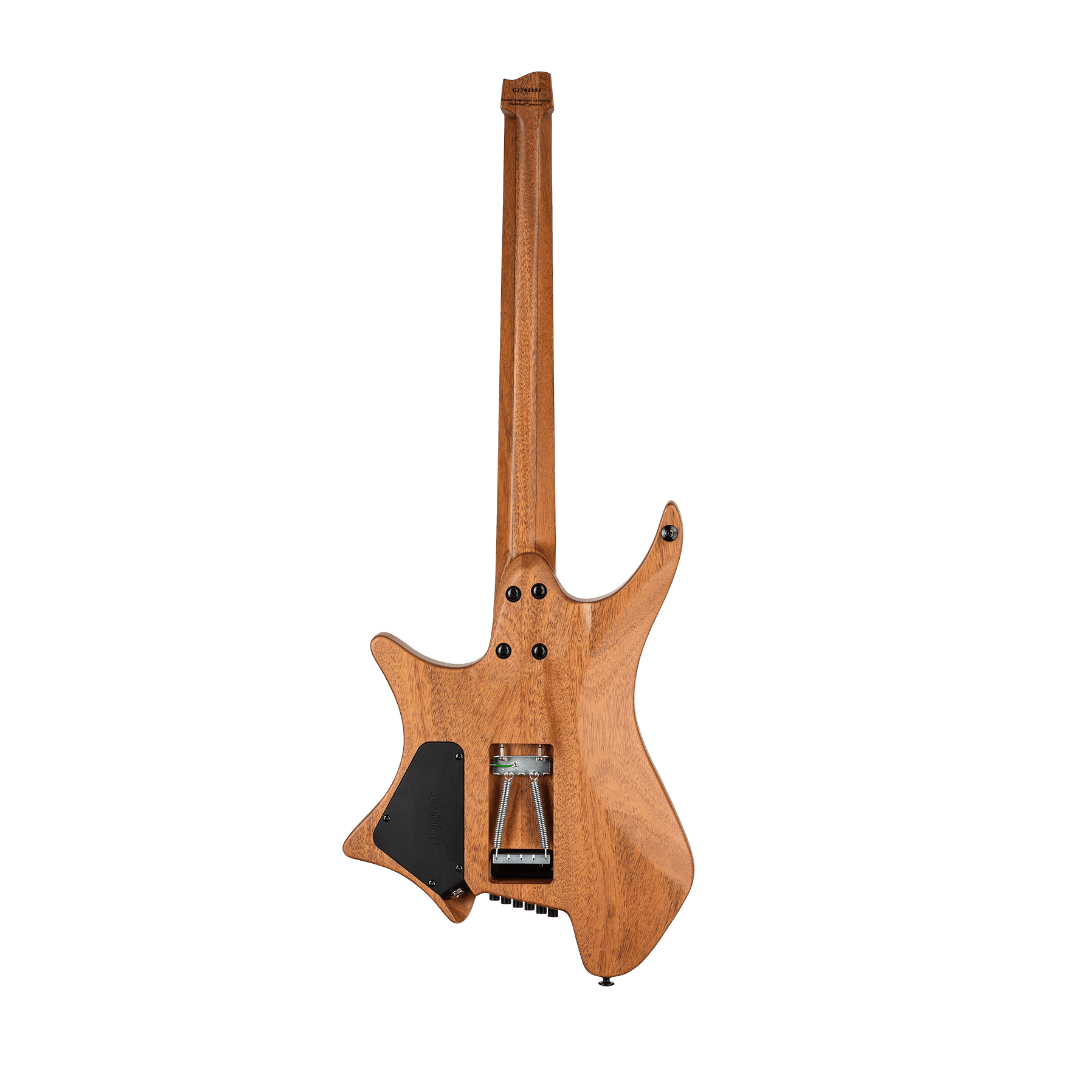 The chambered Mahogany body paired with a Mahogany neck delivers a rich, warm tonal foundation with strong midrange presence and excellent sustain. The Ebonol fretboard enhances articulation and attack, ensuring clarity even in complex passages. Combined with the multiscale design (25″–25.5″), the guitar offers balanced tension, improved intonation, and a highly responsive feel across all strings.