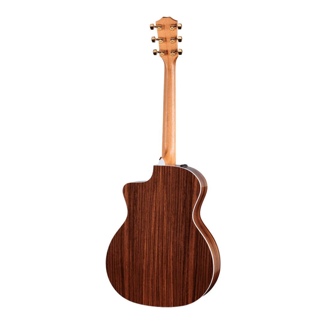 A solid torrefied Sitka spruce top paired with layered Indian rosewood back and sides produces a clear, balanced voice with strong projection, warm mids, and a subtle aged-in character. Taylor’s cantilevered V-Class bracing enhances sustain, volume, and pitch accuracy across the tonal spectrum, while the Grand Auditorium body shape offers versatile responsiveness for strumming, fingerstyle, and everything in between.