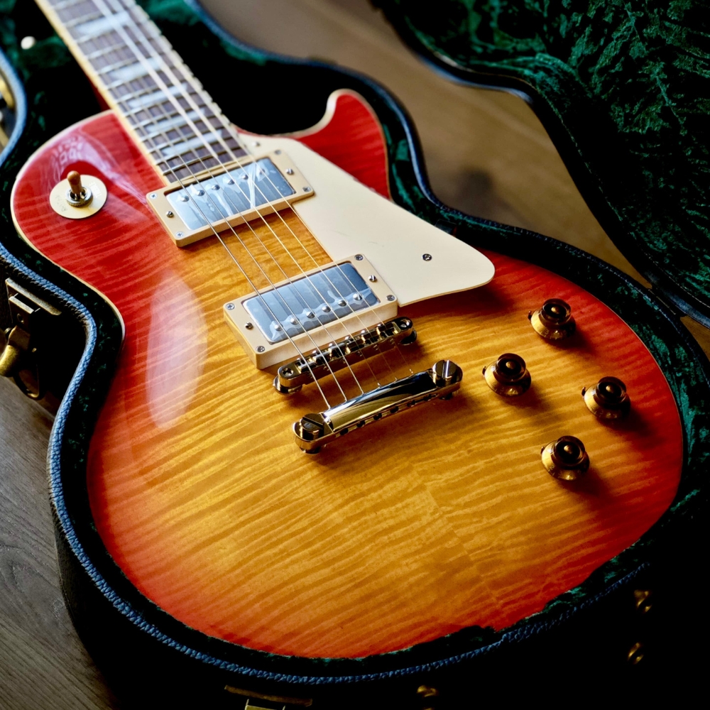 Classic Cherry Sunburst finish with a figured maple top